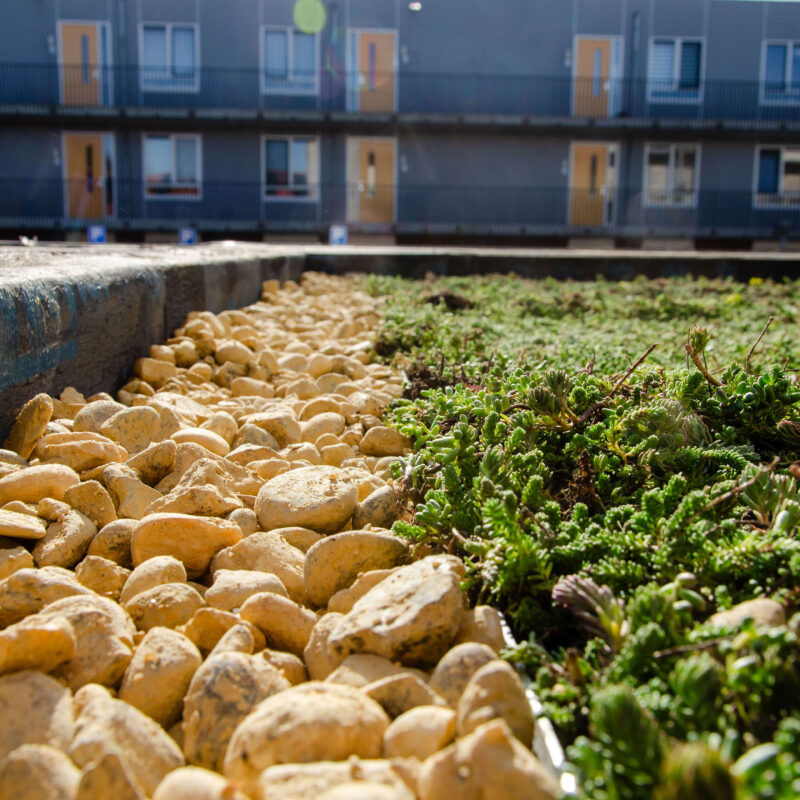 Groendaken zijn daken die bedekt zijn met planten en vegetatie. Ze dragen bij aan een duurzamere leefomgeving door regenwater op te vangen, de luchtkwaliteit te verbeteren en de temperatuur in steden te verlagen. Daarnaast zorgen groendaken voor extra isolatie, wat kan helpen om energiekosten te verminderen. Ze bieden ook een leefgebied voor insecten en vogels, waardoor de biodiversiteit in stedelijke gebieden toeneemt. Groendaken zijn daarmee een slimme en milieuvriendelijke oplossing voor de toekomst.