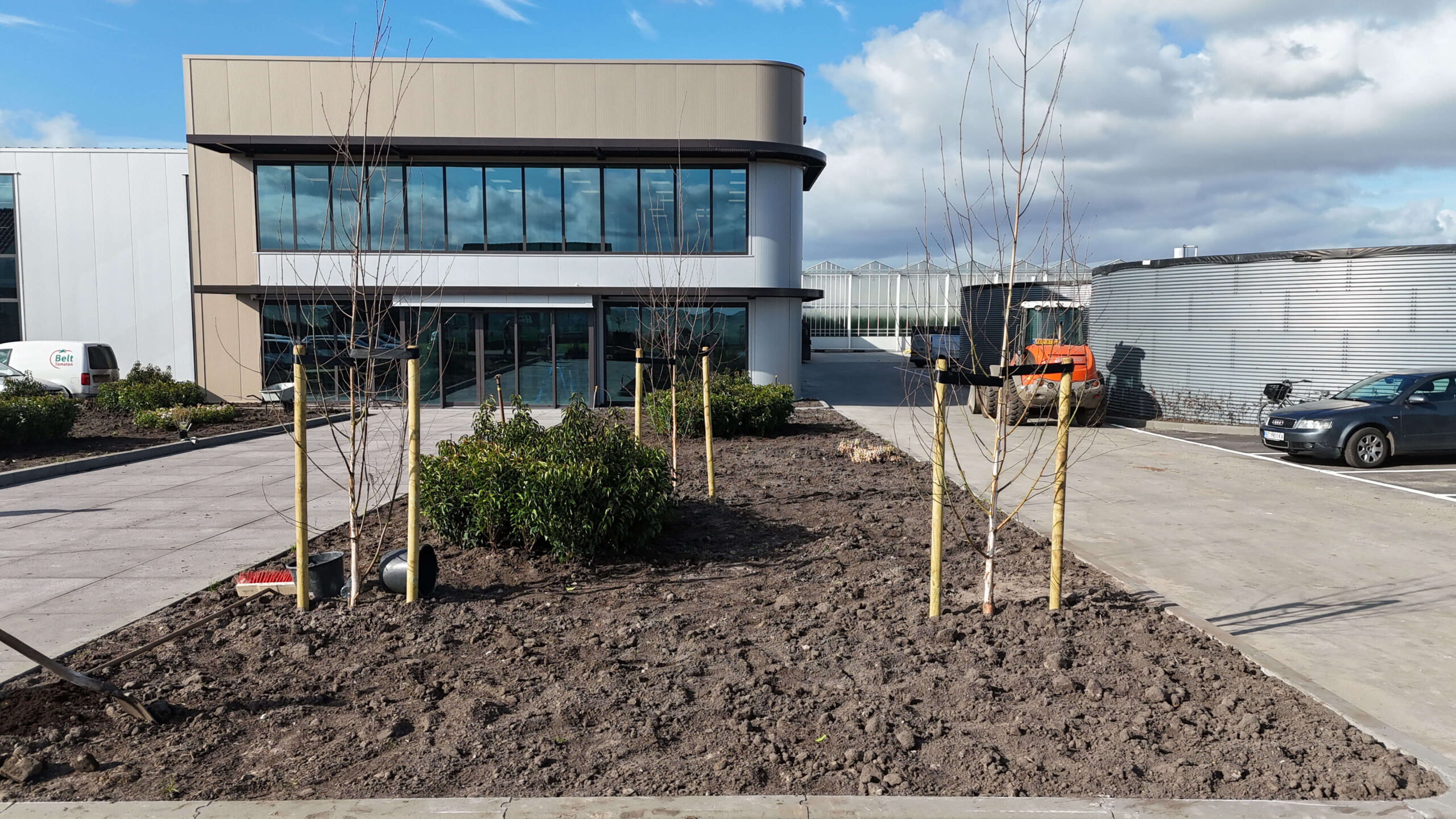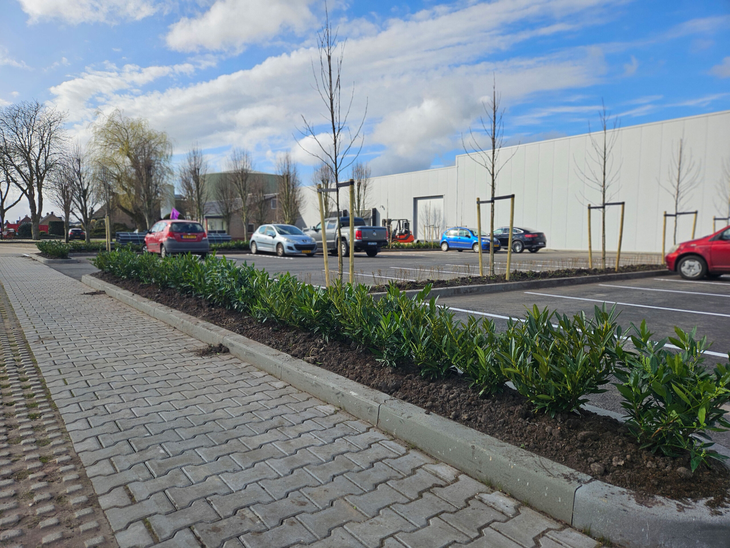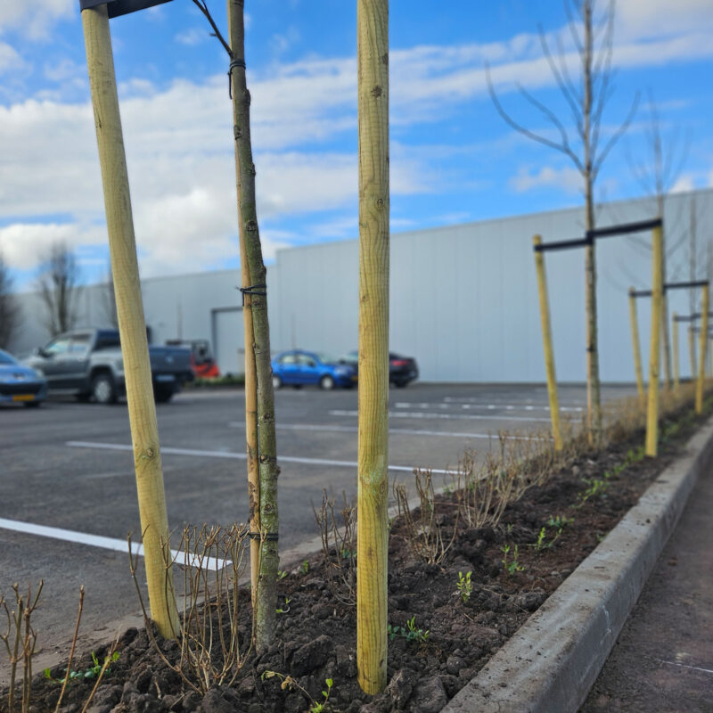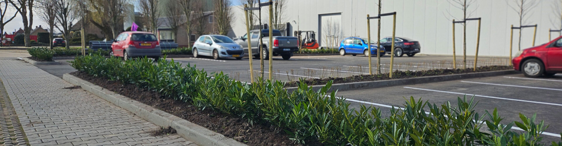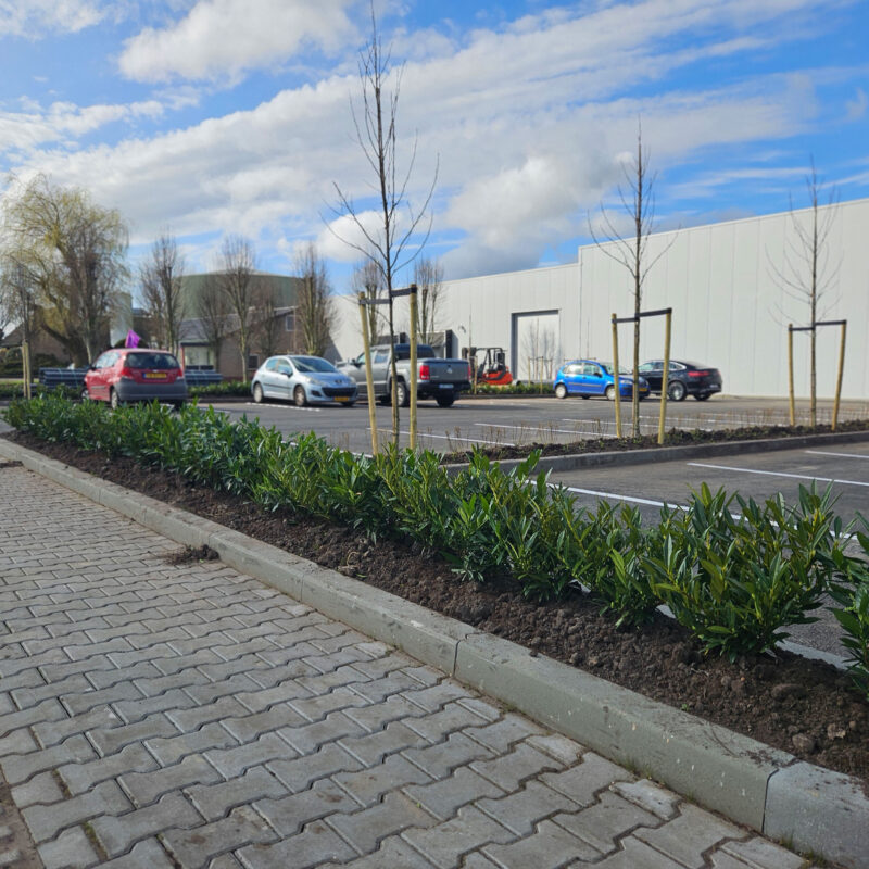 Strakke en verzorgde beplanting die zorgt voor een groene, representatieve uitstraling van het terrein.